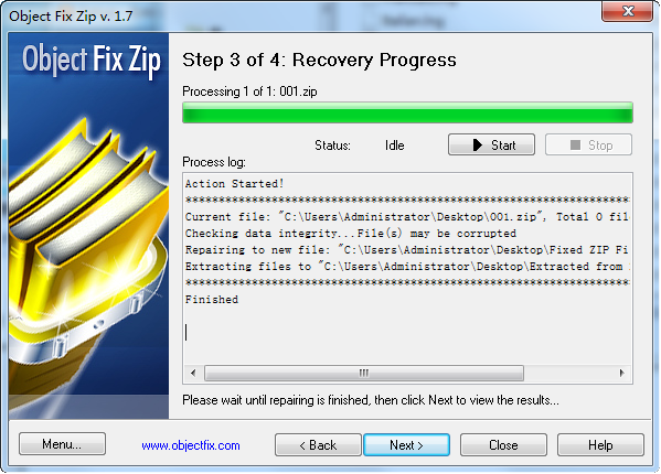 受损zip包修复Object Fix Zip 是一个程序,用于修复的Zip压缩文件。它可以通过创建一个新的Zip文件同时回收有问题的Zip文件的内容,在可能重建一个指定的Zip文件。