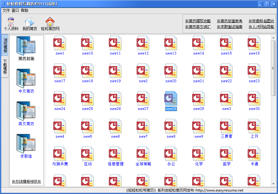 轻轻松松写简历》内置数百个各种精美中英文简历及求职信,
