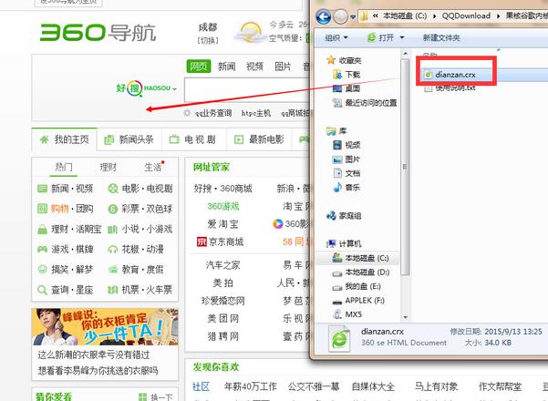 1、下载插件,解压,打开浏览器,将文件拖入(或者鼠标双击插件即可)