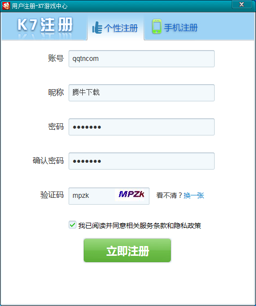 1、下载安装好官方最新版本K7游戏大厅,打开游戏中心,第一次进入需要注册账号。