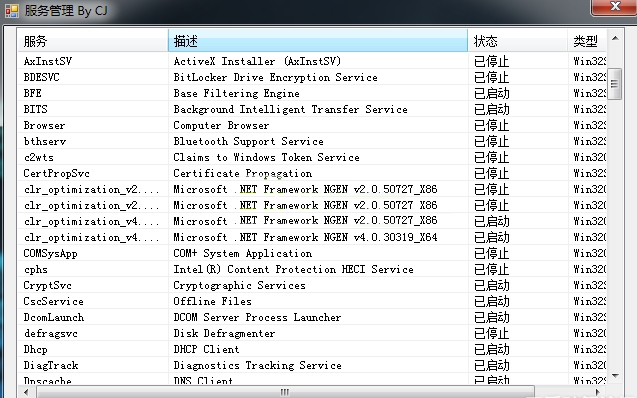 CJ服务管理器可以帮助用户便捷控制系统服务进程,打开本软件后将服务程序一一列表其中,用户可启动或停止服务项。