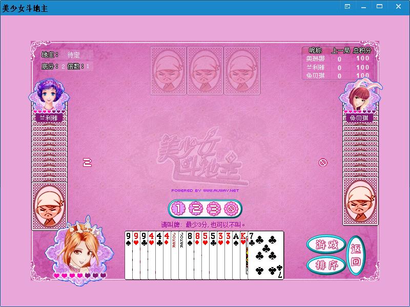 美少女斗地主游戏汇集了人气的动漫美少女,你可以选择两名漂亮的动漫MM跟你一起玩斗地主,比赛胜利后还会向玩家展示一张漂亮的CG哦,精彩不容错过,心动不如行动 赶紧下载体验吧.超人气的动漫美少女陪你玩斗地主!