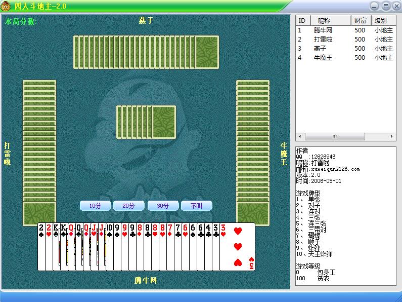 四人斗地主单机版是斗地主的升级版本,游戏玩法改为四人玩两副牌,地主依然为一个人其他三家是农民,双方对战,谁先打完牌谁赢。腾牛单机网提供四人斗地主下载,快来下载体验吧。