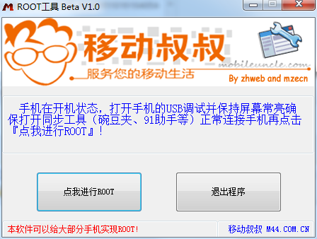 移动叔叔一键ROOT工具适用android2.3等系统的刷机工具,刷机过程十分简单,完全一键式,可以说是傻瓜式刷机工具。
