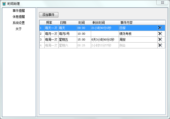 1、 事件提醒:可仅一次、每天、每周、每月设置提醒。