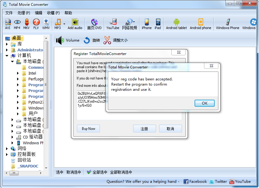 Total Movie Converter 电影转换器从YouTube,Vimeo的,和sevenload的转换视频。