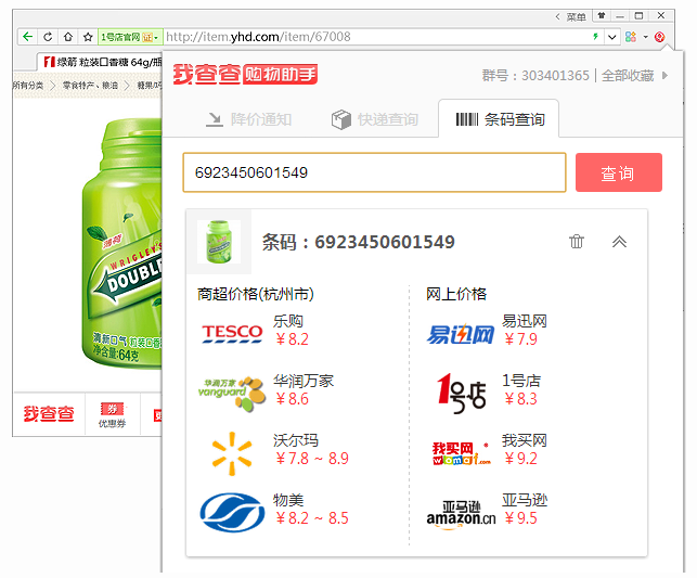 我查查购物助手是一款简单轻巧的浏览器扩展,可以让你的网购更加省钱,支持主流浏览器,主要提供了全网比价、价格历史以及条码查询等功能。