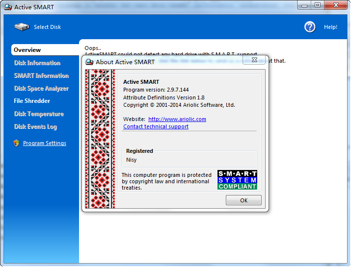 Ariolic ActiveSMART ActiveSMART是硬盘驱动器的诊断和健康状况监控软件。它使用SMART技术监控硬盘健康,性能,温度,可用空间和其他重要参数。当ActiveSMART安装,你会看到它的图标和硬盘驱动器的温度在系统托盘(时钟附近)。