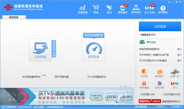 福建联通宽带提速客户端主要功能: