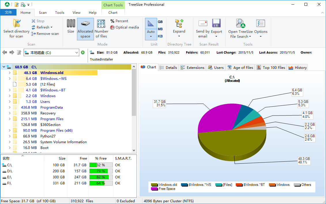 TreeSize Professional是一个强大而灵活的硬盘空间。