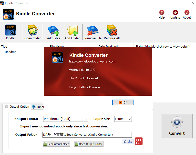 电子书转换器Kindle Converter 很容易地转换Kindle的DRM/ DRM的免费电子书为PDF格式ePub格式的Word格式。用户可以查看其他计算机或设备的Kindle电子书,它支持下载的Kindle的PC和nodrm MOBI文件Kindle的DRM文件转换为PDF格式EPUB Word文本HTML格式的文件。