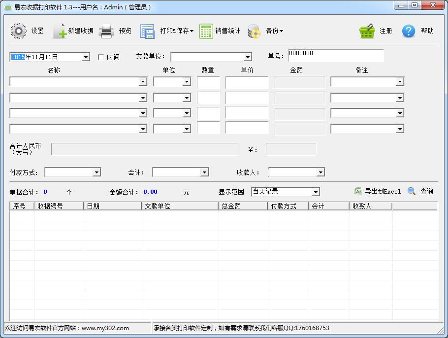 易宏收据打印软件是一款专门的收款收据打印系统,这款软件广泛用于各种店铺和单位,帮助你为客户开具收据使用,软件功能强大多样,可设置各种规格的打印纸张,并能自定义纸张大小,可设置打印模版(自定义标题、备注、加印章等),可调整打印边距,表格行高,有需要的朋友可以免费下载使用。
