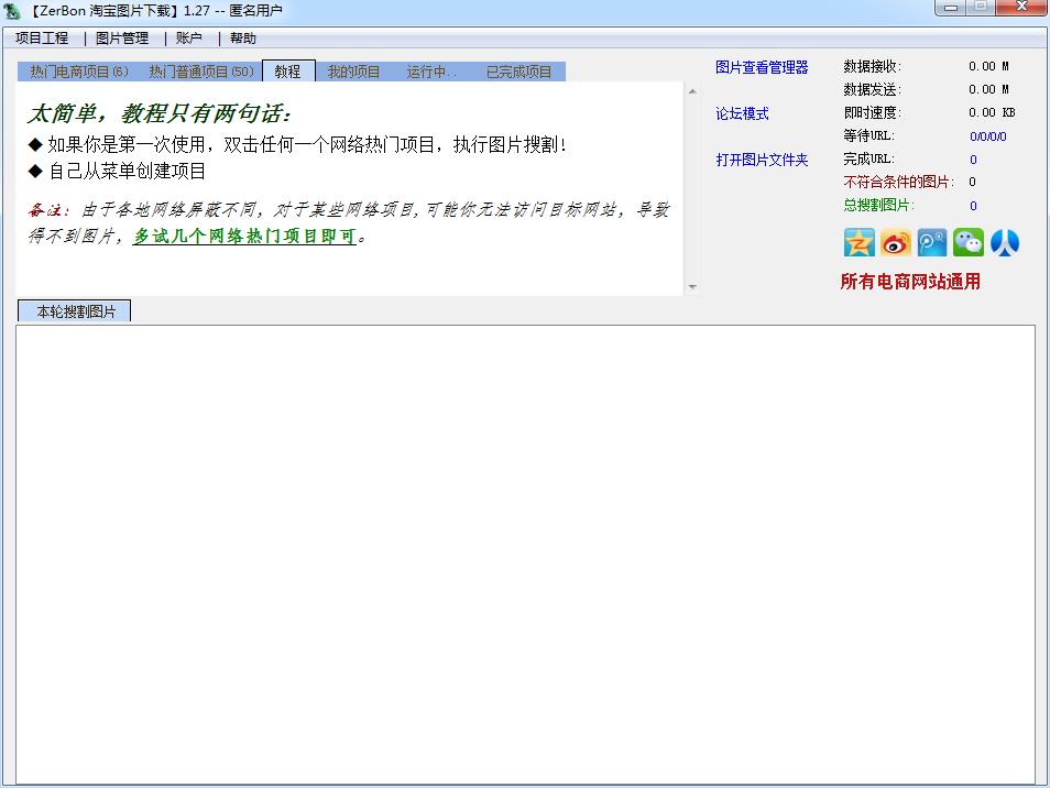 ZerBon淘宝图片下载工具是一款由ZerBon软件官方推出的淘宝图片批量下载器,这款软件操作简单,支持宝贝大图智能下载,电商通用。目前支持的网站有:淘宝,天猫,京东,微店,拍拍,ebay,易购,海淘阿里巴巴等,这款ZerBon淘宝图片下载工具可以为你节省大量时间,大大提高你的效率。