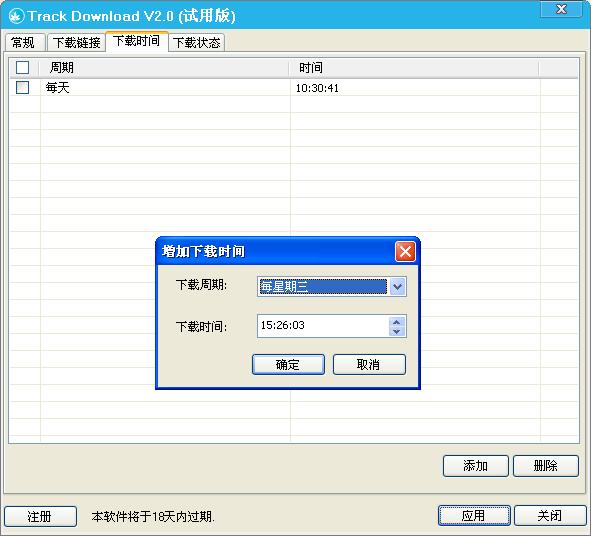 2、点击添加按钮,选中下载的周期及下载的时间。