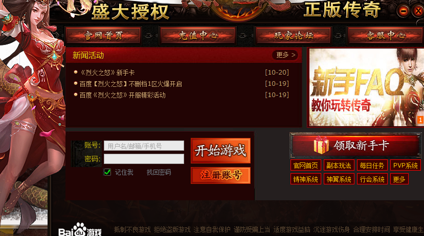 百度《烈火之怒》不删档6区于11月19日11点震撼开启。《烈火之怒》是一款大型即时制角色扮演类网页游戏。相比目前上市的其他ARPG类游戏在游戏玩法上独树一帜,采用丰富活动玩法和角色成长养成相结合的模式。此外,《烈火之怒》还继承了“传奇”纯正经典的攻城战,并在原有PK玩法的基础上,革命性的加入双城争霸,激情呈现“以一敌百,全屏激战”的超爽体验。完全诠释了《烈火之怒》与众不同的游戏魅力。