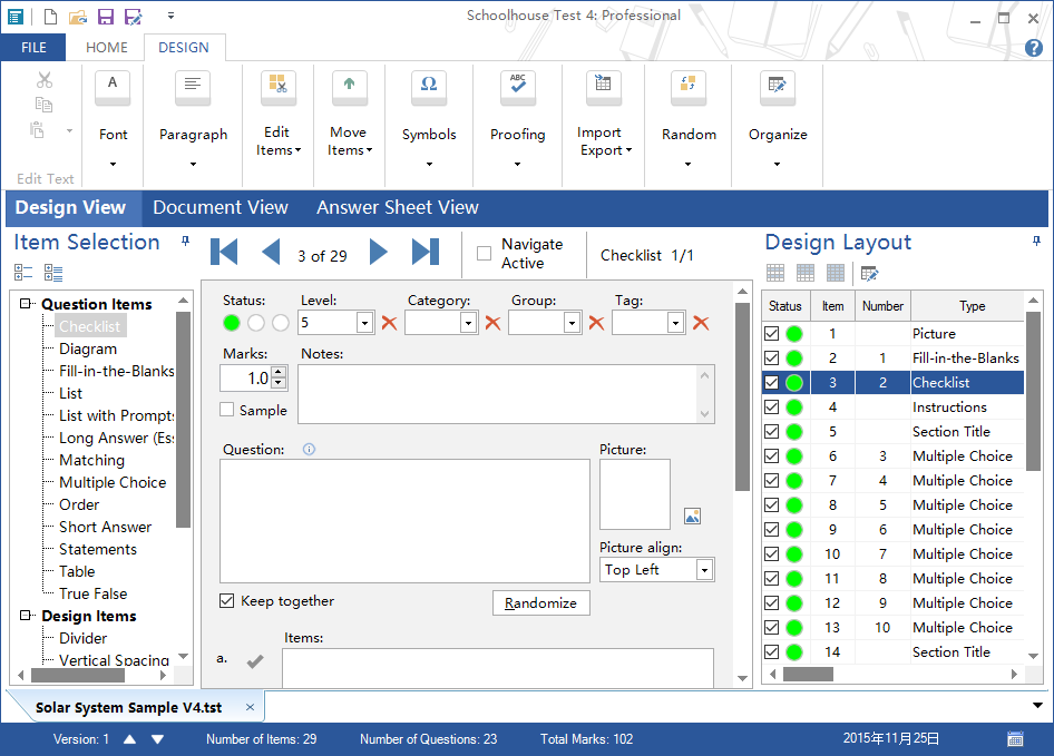 Schoolhouse Test 能够创建和打印测验,测试或考试,从未如此简单。设计定制的测试,以评估使用多达十三种不同的问题类型中的任何学科领域学习:选择题,填空题,填空,匹配,简答题,列表,列表提示,图表,订单,真/假,征文,清单,报表和表格。