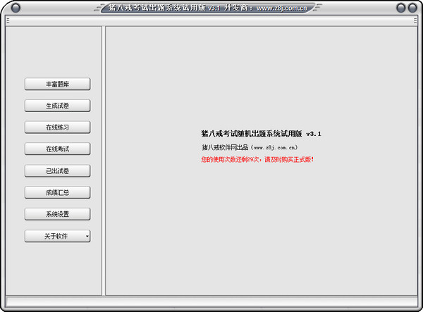 猪八戒考试出题系统是专用于企事业单位、学校考试出题的软件,可用于岗前考试、党员先进性教育后考试,元宵阶段性考试等,自带标准试卷模板,节省大量人力物力。该软件使用目的主要是方便使用单位积累自己的题库,然后出题的时候电脑会把您平时您录入的题,自动随机的生成试卷。