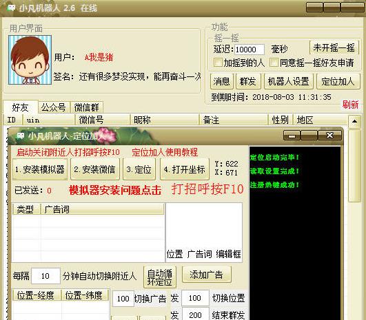 小凡机器人是一款专为营销推广人员设计制作的微信营销软件,这款软件可以帮助你定位加人,群发好友,可以帮助本地服务类企业精准营销,通过一键就能实现微信所有操作,可24小时挂机自动回复,低投入、高回报;永久持续更新服务等。欢迎有需要的朋友免费下载使用!