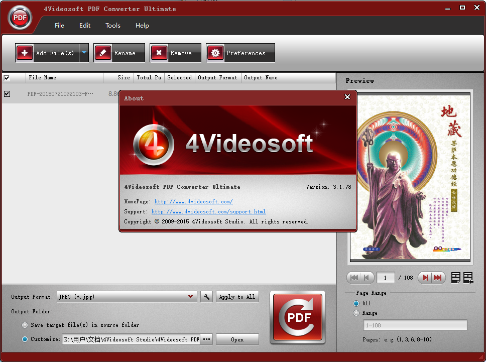 充当为一体的专业和全面的PDF转换,4Videosoft的PDF转换终极可以很容易地转换成PDF文件。