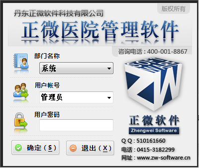 正微医院管理软件,主要功能包括门诊管理,入院管理,结算管理,病区管理,医师工作站,护士工作站,医务科室管理,药品库存管理,药房管理,财务查询,院长查询,统计报表,系统安全等子系统,本系统功能完善易学,易用,易管理,实现医院物流,资金流,信息流和质量管理全过程实时监控与动态管理。通过各类报表,让经营者随时都能得到药品的进销存以及质量管理信息等及时,准确的数据和医院收入情况以及医院工作人员的工作量统计等数据,以便使有限的资金流和药品流得到充分利用,让经营者得到更好的利润,同时针对医院经营中存在的一些问题,我们开发了此套医院管理软件,