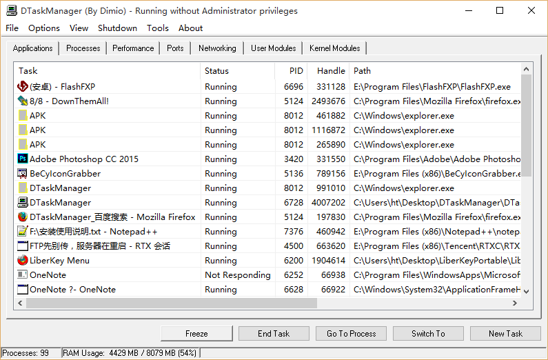 DtaskManager 是一款单文件绿色增强型任务管理器软件。