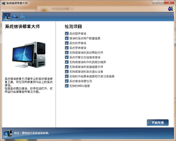 系统错误修复大师是专业的系统错误修复工具,可检测并修复95%以上的系统错误。