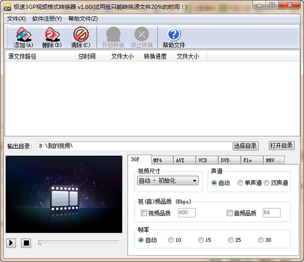 3、MP4、3GP转换为AVI(DivX/XivD/MJpeg)、3GP、MP4;