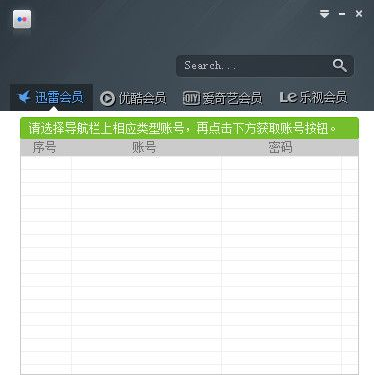 1.下载并运行软件,选择所需的视频网站,点击获取账号.