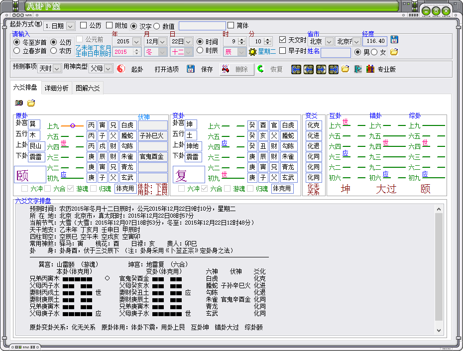 以上各种起卦方法,在修改相关参数时可动态看到起卦结果并显示详细的计算过程(限于注册版本)。