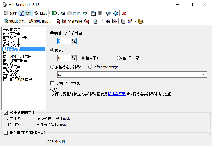 档案大量重新命名工具- Ant Renamer,支援万国码(Unicode),可以开启日文等非中文资料夹,汇入档案或资料夹后,可以大量执行变更副档名、取代字串、取代多重字串、插入字串、移动字串、删除字元、变更大小写...等动作。