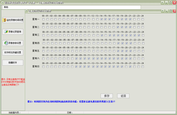 支持监控时间设置功能,一天哪几个小时进行监控,极大节约了电脑资源。