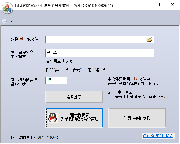 txt分割器一般有三种文本分割方法,即按大小分割,平均分割成若干段和按章节分割。txt分割器主要用于分割体积大的小说,由于现在txt小说的体积都非常大,有的达到10M,用手机打开则速度会显得有些慢,而且阅读时间长