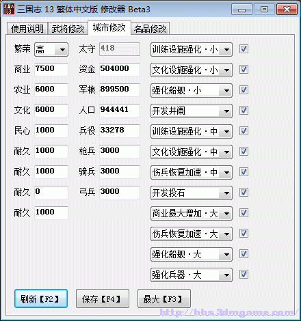 当前位置:星空最新网上盘口游戏娱乐修改器 → 三国志13修改器下载 Beta3 繁体中文版