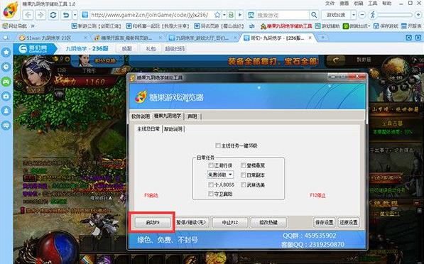 一键托管功能设置二:糖果九阴绝学辅助工具,可以根据电脑的不同,自动识别系统选择。及后台兼容模式。