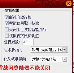 3:关闭术士技能智能判断:如果觉得术士技能不正常,可选此项,术士将不再判断自身血量,每次都释放技能