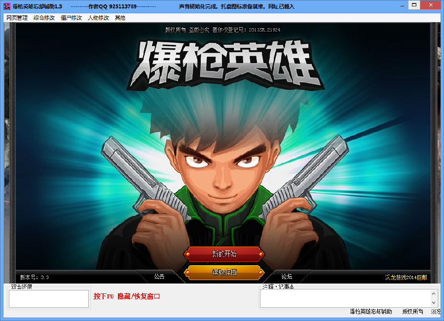 ÍøÒ×ÔÆÒôÀÖpc¿Í»§¶Ëv2.9.8 ¹Ù·½°æ±¬Ç¹Ó¢ÐÛÍüÈ´¸¨ÖúÊÇÒ»¿î´¿´âµÄÓÃÓÚ±¬Ç¹Ó¢ÐÛÓÎÏ·µÄ¸¨Öú¹¤¾ß£¬¸¨ÖúÌṩÃëÉýÂú¼¶¡¢ÊôÐÔ±¬Âú¡¢È«ÆÁ±¬Îï¡¢Ð޸ļ¼ÄÜ¡¢ÎäÆ÷±ä̬ÊôÐÔ¡¢½©Ê¬Ð޸ġ¢ÈËÎïÐ޸ĵȹ¦ÄÜ¡£ËùÓеIJÙ×÷ÔËÐмÇÂ¼Íæ¼Ò¶¼ÄÜ¿´µÃµ½£¬²»¸Ä´úÂë¡¢²»×¢È룬°²È«·ÅÐÄ£¬ÍêÈ«Ãâ·ÑʹÓã¡»¶Ó¸÷λ±¬Ç¹Ó¢ÐÛÍæ¼ÒÏÂÔØÊ¹Óã¡