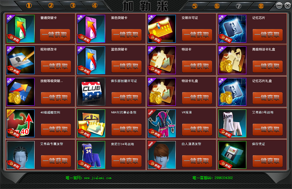 加勒米NBA2K刷道具点券辅助主要用于NBA2K游戏刷商城道具使用。可以免费无限刷取未来忍者 外星来客 高级特训卡礼盒 雷霆战警 财神降临等各种付费道具。所有付费绝版商城物品都能刷。软件目前稳定开放中,玩NBA2K的朋友要抓住机会啦!