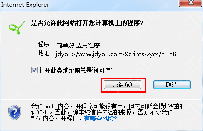 6.这是会调用“简单游”软件,在弹出的界面中,点击“允许”
