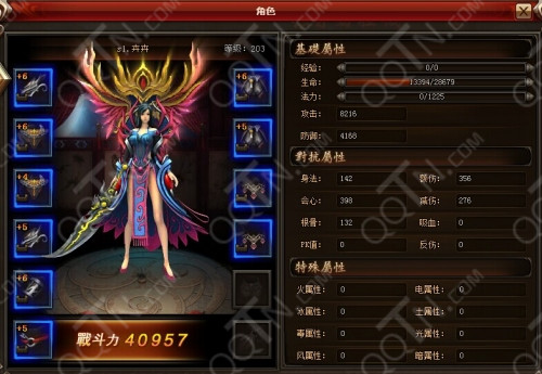 点击“主角”界面后,玩家可以查看到自己的装备界面.将鼠标移动上去即可查看到详细说明。在角色右边栏可以看到角色的具体属性。