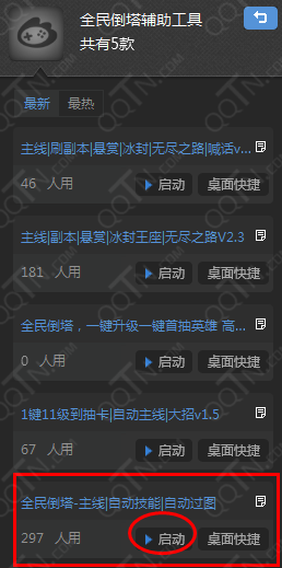 4.在全民倒塔辅助工具中“启动”“全民倒塔-主线|自动技能|自动过图”