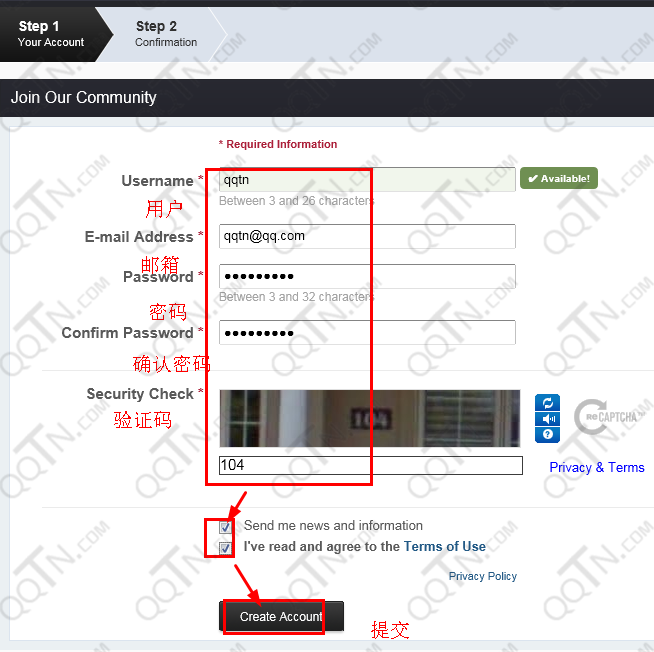 输入注册帐号信息——提交