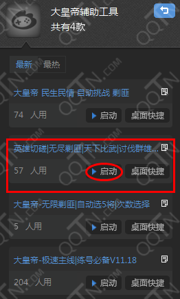 4.在大皇帝辅助工具中“启动”“大皇帝无限剿匪|自动选5将|次数选择”