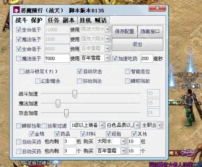 战天恶魔辅助是一款专门针对最新火爆页游《战天》制作的游戏辅助工具,这款辅助据说是目前最牛逼的战天辅助,战天恶魔辅助它拥有超多强大的功能,包括刺杀暗杀、无影出刀、顶药加速魔法、刀刀麻痹、多倍攻击、多倍魔法等逆天辅助功能,喜欢玩战天的玩家千万不要错过这款恶魔辅助!