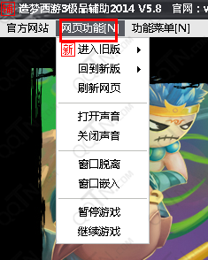 刷新网页、新旧版切换、脱离/嵌入窗口、打开/关闭声音、暂停/继续游戏