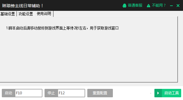 在使用琅琊榜主线日常辅助时,玩家需要注意的是,在启动辅助后请移动鼠标到游戏界面上等待2秒左右,因为玩家获取游戏窗口。