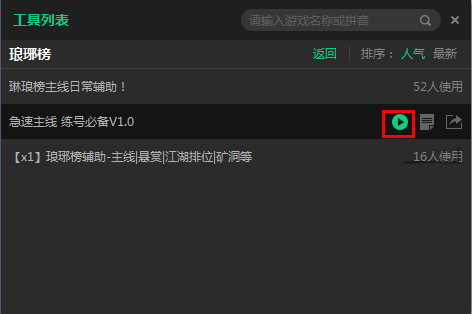 4.在琳琅榜辅助工具中“启动”“榜急速主线 练号必备V1.0”