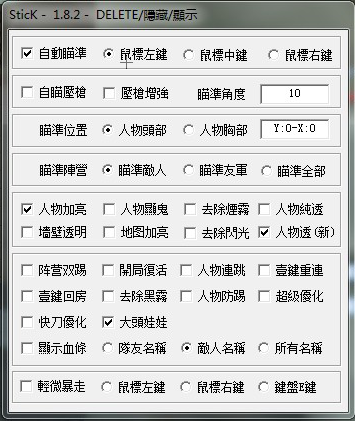 隱藏功能:F7準星 F8方框 F9射线 F10XP血條框 F11win7血條框 ↑↓←→ 調整自瞄點位!