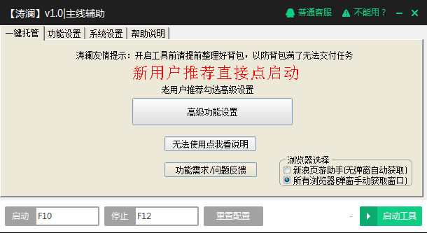 4.在乔峰传辅助工具中“启动”“【涛澜】v1.0|主线辅助”
