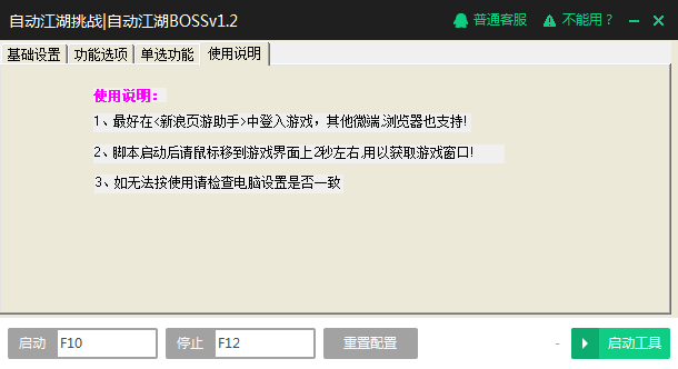 4.在乔峰传辅助工具中“启动”“自动江湖挑战|自动江湖BOSSv1.2”