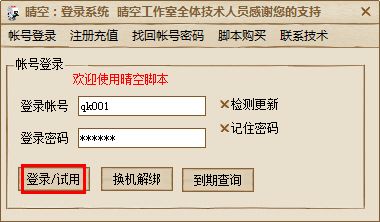 雷霆之怒晴空脚本支持微端、网页上的游戏,提供了封魔谷、单人副本、护送押镖等那个多种功能,使用时玩家需将窗口尽量全屏。